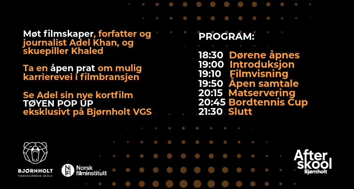 Gjennom dette arrangementet får vi besøk av vår tidligere elev Adel Khan Farooq, som i dag er en anerkjent filmskaper, forfatter og journalist. Han jobber innen både dokumentar, fiksjon og animasjon, og har utgitt flere kritikerroste verk.