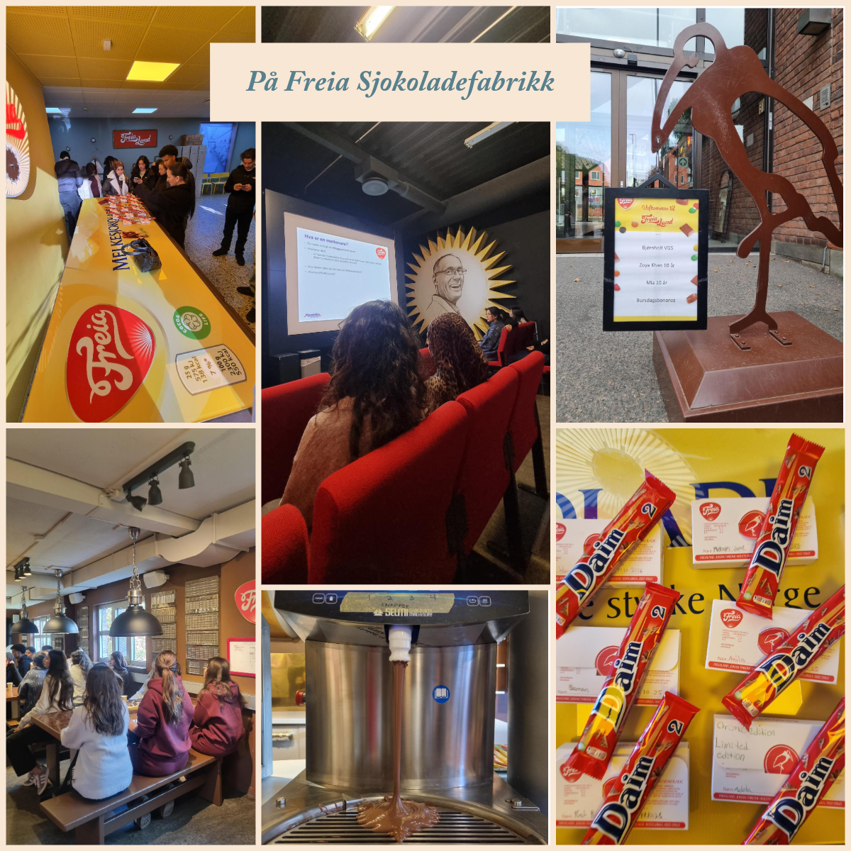 I dag besøkte elever fra markedsføring og ledelse Freia Sjokoladefabrikk på Grünerløkka i Oslo. Fabrikken ble etablert i 1889, og store deler av Freias sjokoladeproduksjon gjøres fortsatt i fabrikken midt i hovedstaden. Her lærte vi om sjokoladens historie, hvordan sjokolade lages, vi fikk en sniktitt inn i selve fabrikken, vi lagde vår egen sjokolade og vi lærte masse om hvordan Freia har bygget opp, og beholdt, sin sterke posisjon i markedet. En inspirerende (og søt) dag for hele gjengen!